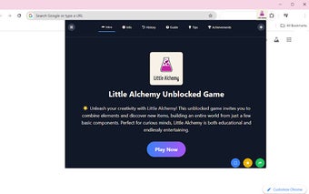 Little Alchemy Unblocked Game — это увлекательная браузерная игра, доступная в Chrome, которая позволяет игрокам раскрыть свою креативность через элементарные комбинации. Начав всего с четырех основных элементов — воздуха, воды, огня и земли — пользователи могут экспериментировать и комбинировать их, чтобы создать более 500 уникальных предметов, от простых инструментов до мифических существ. Игра предназначена как для случайных, так и для преданных игроков, предлагая простой механизм игры с перетаскиванием, который улучшает пользовательский опыт.